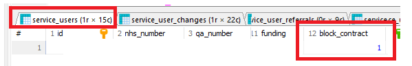 - In the 'service_users' table find the 'block_contract' column: